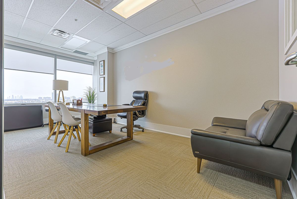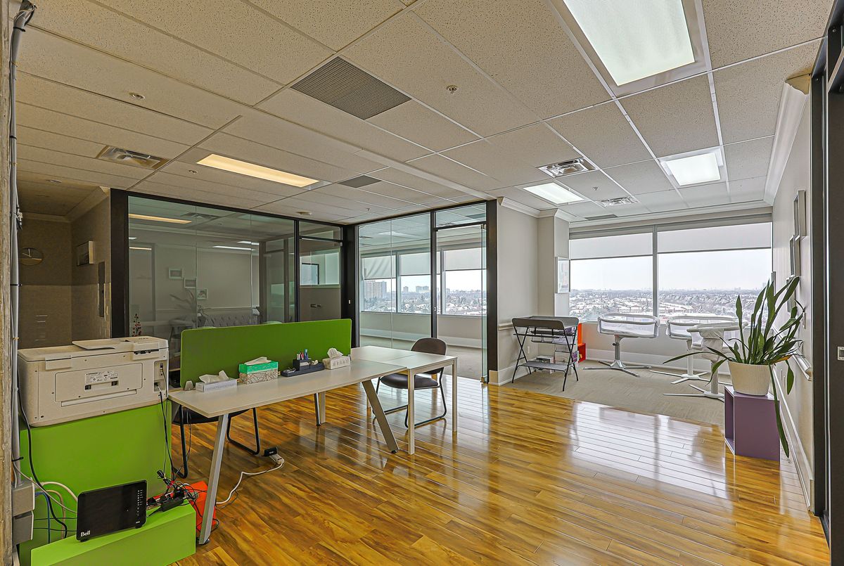 Bright, fully renovated, and furnished office located in the prestigious "World on Yonge" complex at Yonge & Steeles. This mixed-use development features a hotel, shopping mall, and four residential towers. Steps to public transit and a future approved subway station, with quick access to Highway 7 and 407.The office is thoughtfully designed and includes a kitchenette, floor-to-ceiling windows, and a stunning west-facing view overlooking Yonge Street. Ample surface and underground parking is available. Ideal for a wide range of professional offices and services, including dental, medical, and legal practices, as well as accountants, architects, travel agencies, insurance and mortgage brokers, and immigration offices.